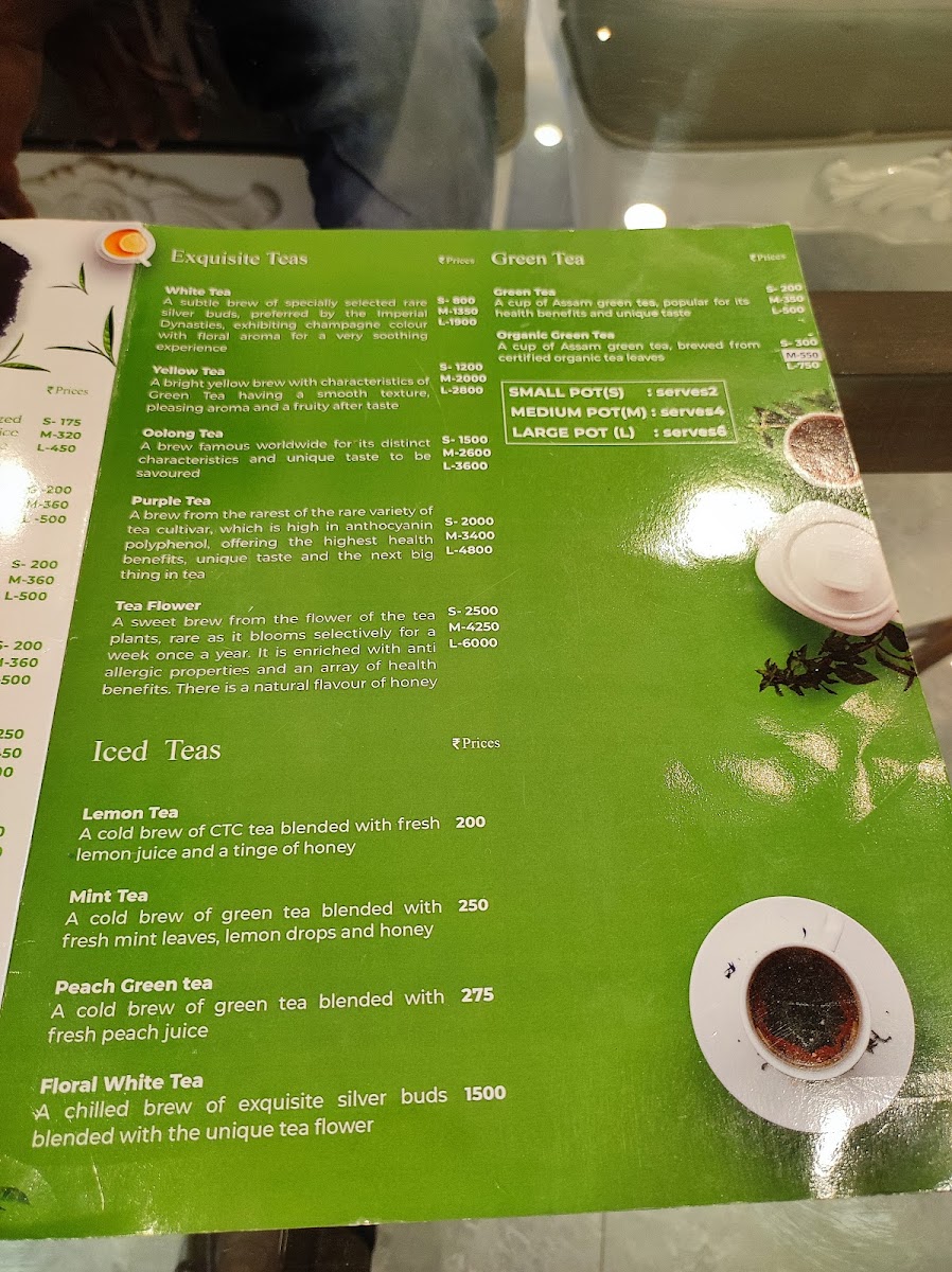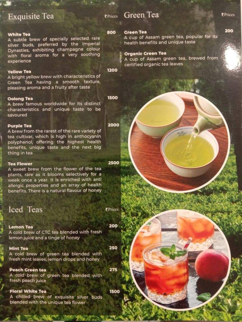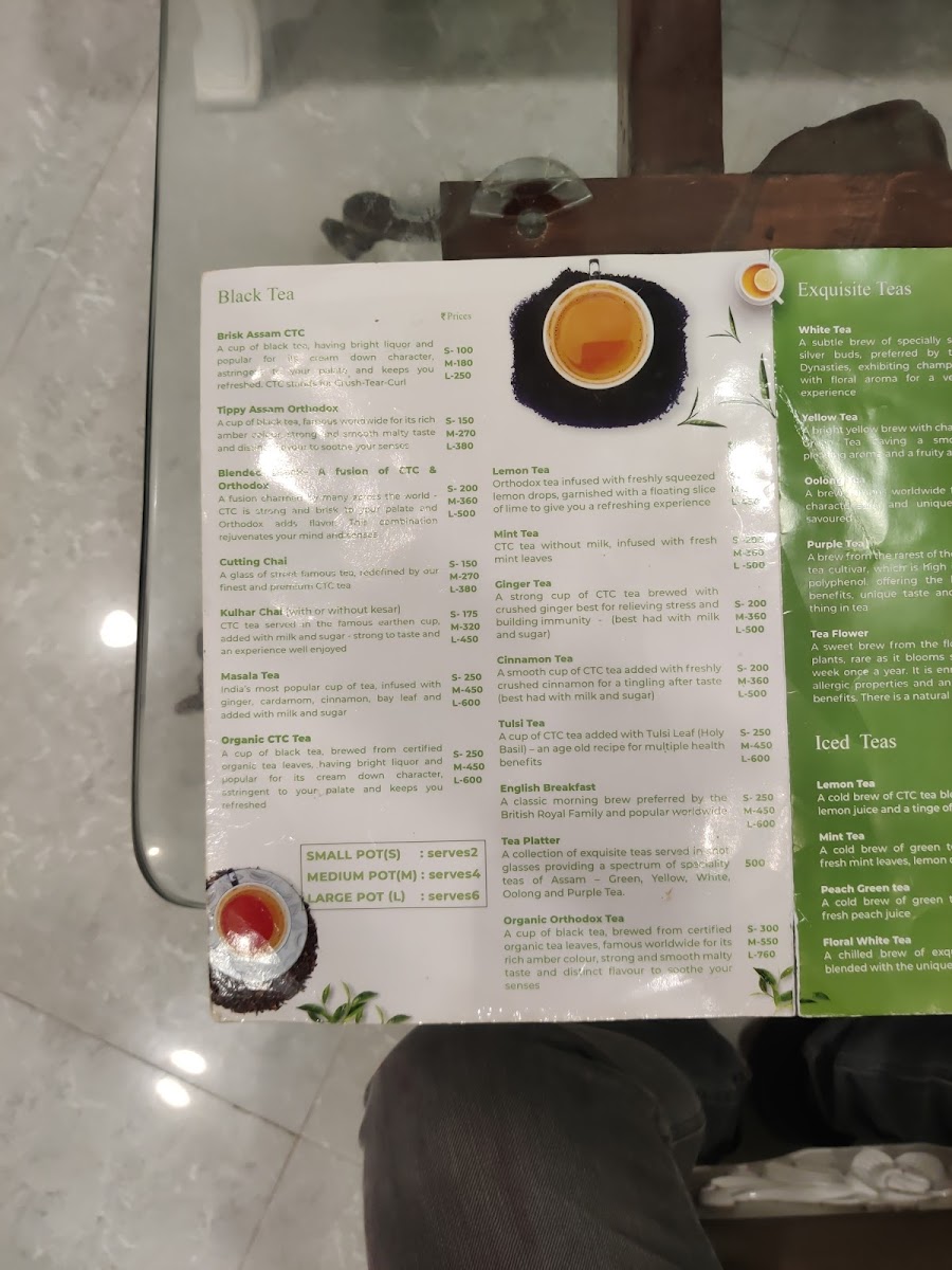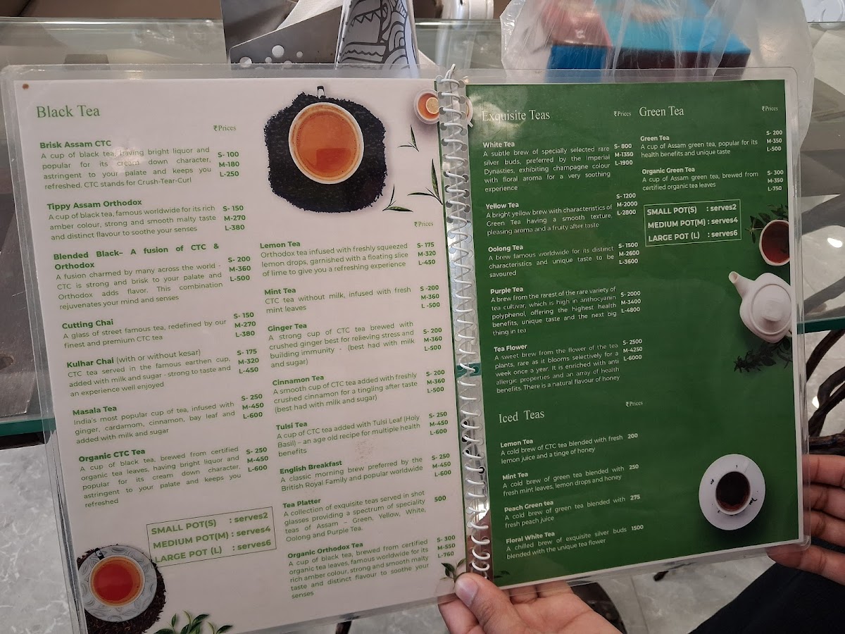 The menu at THE GTAC TEA LOUNGE offers a diverse selection of teas alongside a variety of snacks and light meals. The beverage options focus primarily on different styles and flavors of tea, including classic Assam Black Tea, Green Tea, White Tea, Yellow Tea, Oolong Tea, Purple Tea, and specialty preparations such as Masala Tea, Kulhar Chai, Cutting Chai, Tea Flower, and Organic CTC Tea. Both hot and iced tea selections are available, catering to various preferences and occasions.